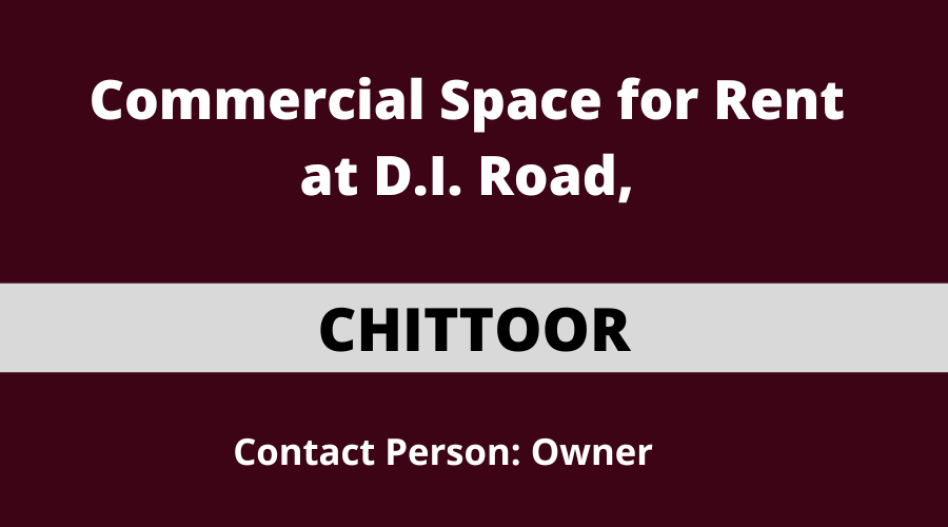 Property Details: Commercial space available for rent at D.No. 20-9-201, D.I. Road, Chittoor.
